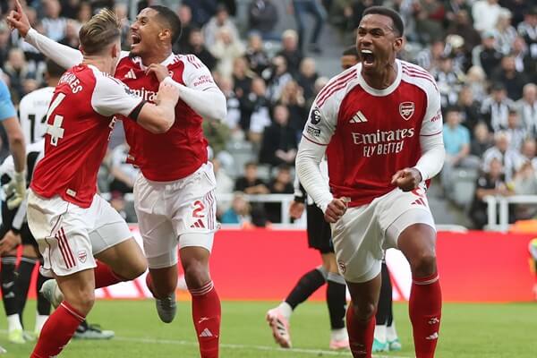 A header in the stoppage time by Gabriel Maghales gave Arsenal the win against Newcastle United.